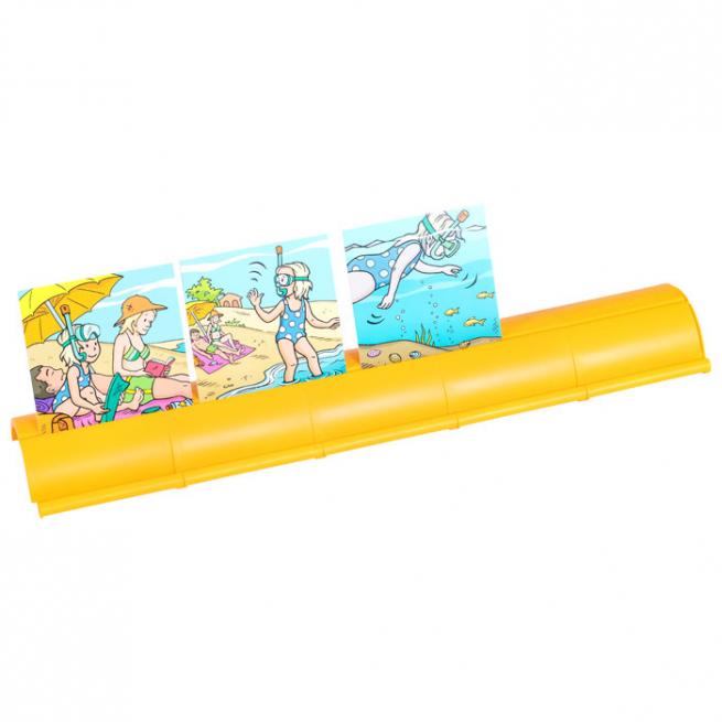 Die 5 kombinationsstarken Steckelemente setzen Sie und Ihre Schüler je nach Gebrauch flexibel zusammen. Jedes Element verfügt über 2 Einkerbungen. Satz-, Spiel- oder Bildkarten stecken Ihre SuS einfach hinein. Zum Lagern einfach stapeln. Set-Farbe wählbar: Gelb, Orange oder Grün.