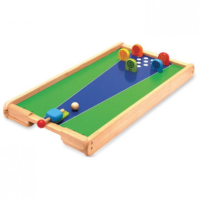Riesenspaß für Actiongamefans. Ob Fußball, Eishockey, Bowling oder Zielschießen – das Spielbrett ist von beiden Seiten zu bespielen und lädt ein, sofort loszulegen. Die Spielregeln sind denkbar einfach und erübrigen langes Erklären. Aus Holz. Geeignet für 1 und 2 Spieler.