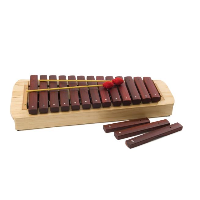Die sorgfältige Verarbeitung hochwertiger Materialien garantiert beste Klangergebnisse. Die flachen Resonanzkästen aus Holz erzeugen einen ausgezeichnet vollen und harmonischen Klang. Die Klangstäbe der Xylophone sind aus Rosewood handgefertigt. Die Klangfarbe ist warm und doch kräftig.