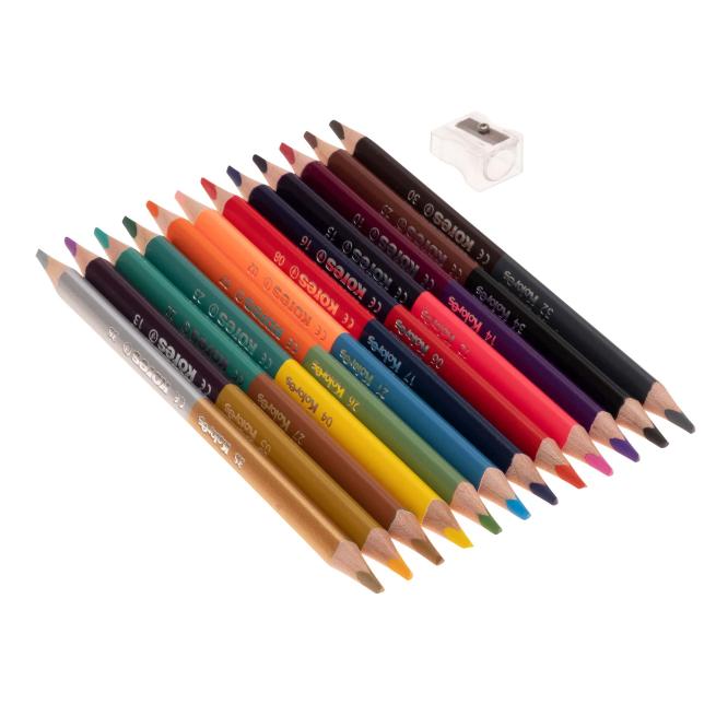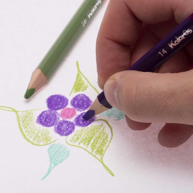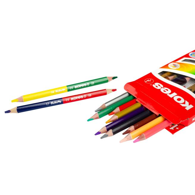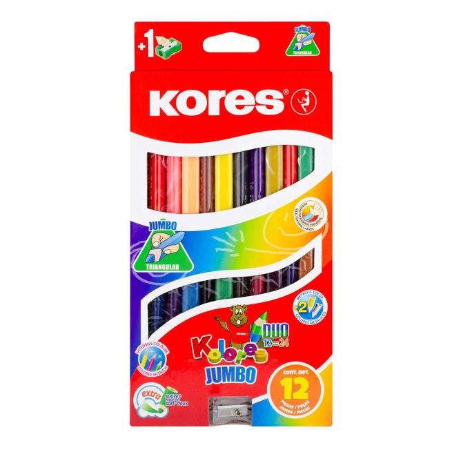 12 Buntstifte und insgesamt 24 Farben. Die kindgerechte Dreikantform liegt bequem und sicher in kleinen Händen. Die bruchsichere Mine ist komplett verklebt. Der Farbauftrag ist besonders einfach. Ein Anspitzer ist enthalten, damit die Stifte stets einsatzbereit sind.