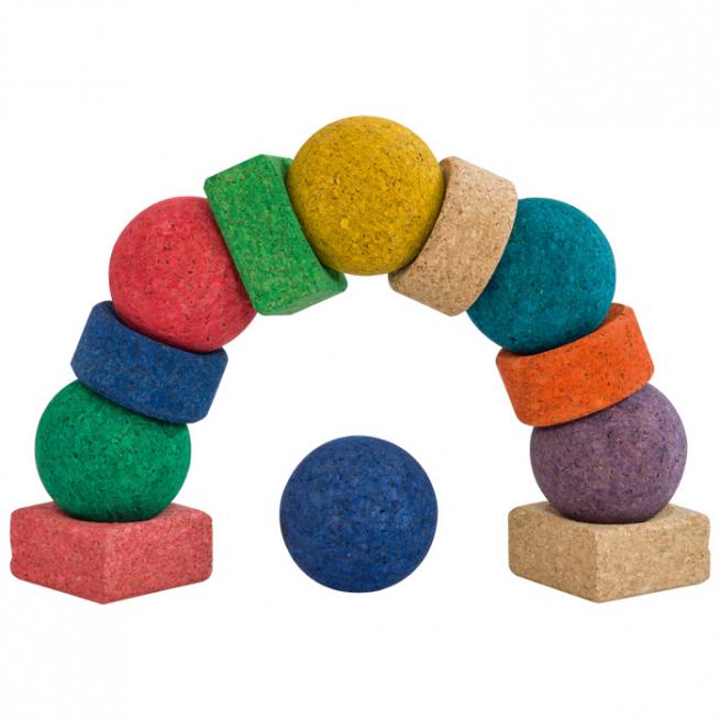 Mit den leichten Korkkugeln und -formen spielen Kinder plastikfrei und 100 % nachhaltig – lachen, leben, lernen inklusive. Die Korkelemente sind sehr leicht und ideal für Kinderhände. Sie fördern Feinmotorik und Geduld beim Stapeln verschiedener Türme und Bögen.