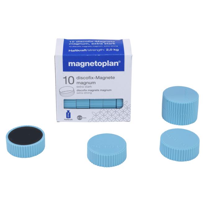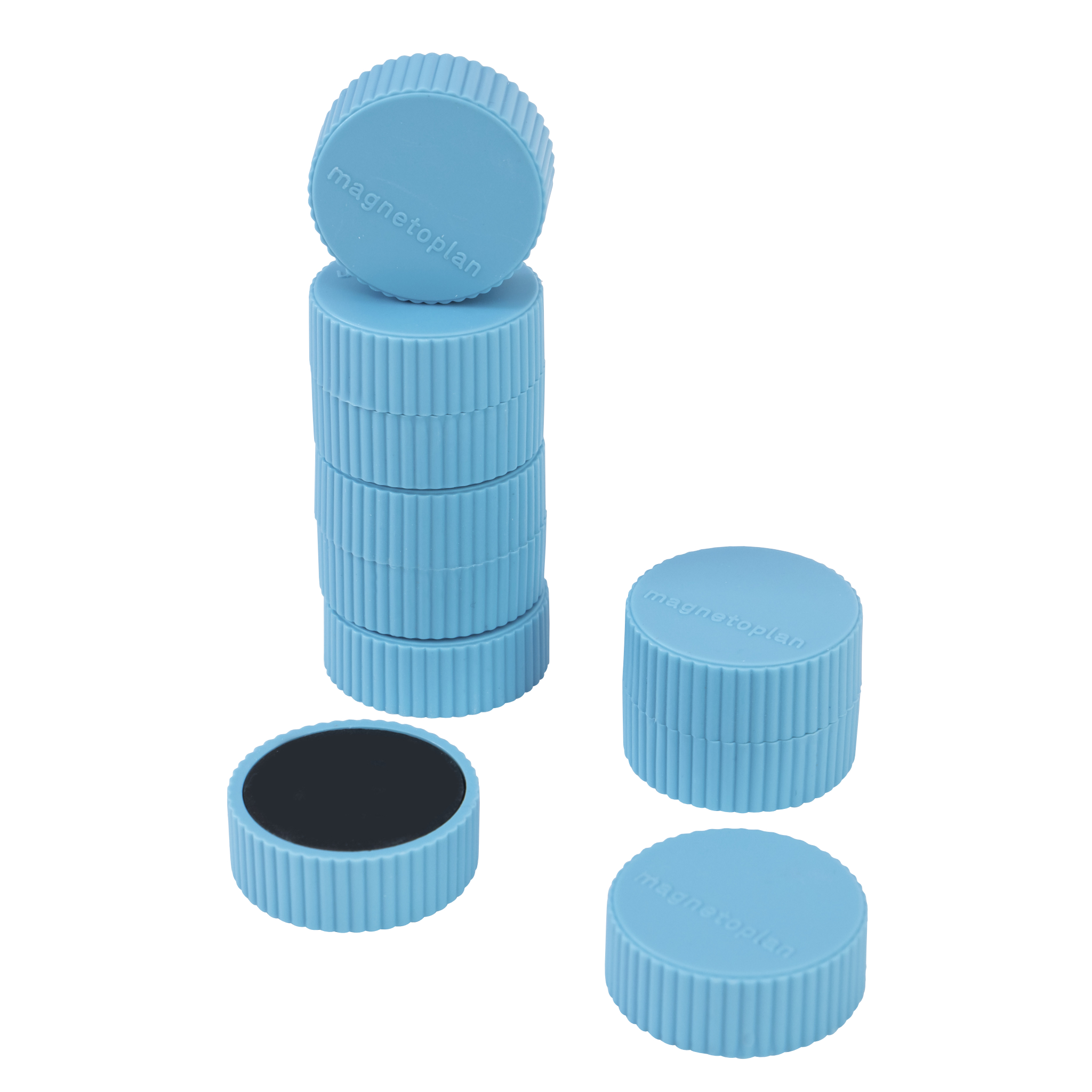 Sie erhalten 10 Rundmagnete (Ø 34 mm, Höhe 13 mm) in blau.
