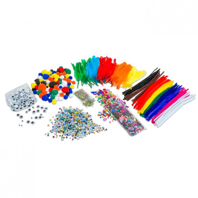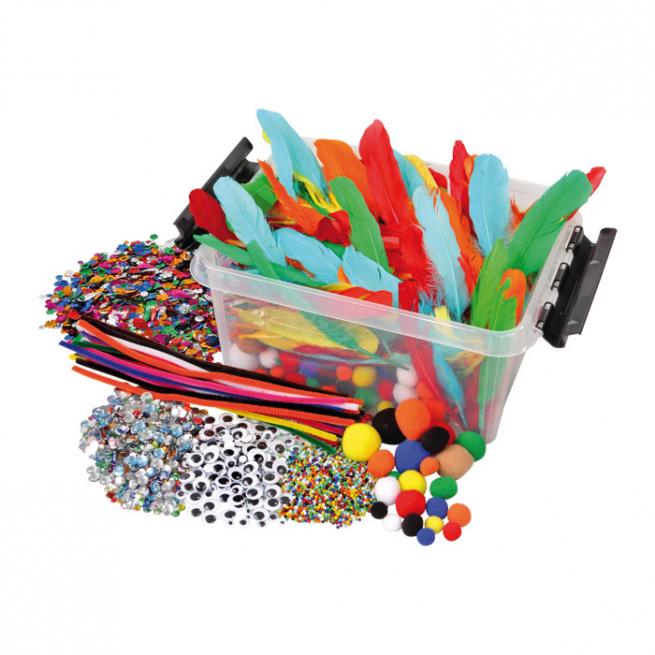 Verzieren nach Herzenslust ist mit diesem umfangreichen Set ein Kinderspiel. Die 7 verschiedenen Materialien regen zum Verschönern diverser Bastelwerke an. Fördern Sie damit die Kreativität und Feinmotorik der Kinder!