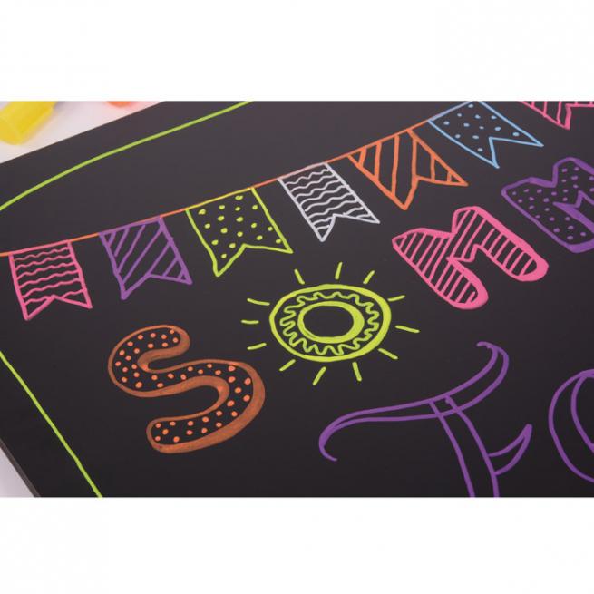 Ob Leucht- und LED-Tafeln sowie Whiteboards oder Porzellan und Glas, aber auch zur Gruppen- bzw. Wochenplaneinteilung – die 8 Kreidestifte in knalligem Neon-Orange, -Pink, -Grün, -Blau, -Gelb, -Rot sowie -Lila und Weiß verwenden Sie auf nahezu allen abwaschbaren Oberflächen. Ab 3 Jahren.