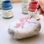 Die Farben auf Wasserbasis sind matt, cremig, schnelltrocknend und lichtecht. Verwenden Sie die Farben auf Untergründen wie Holz, Stein, Ton oder getrocknetem Beton.