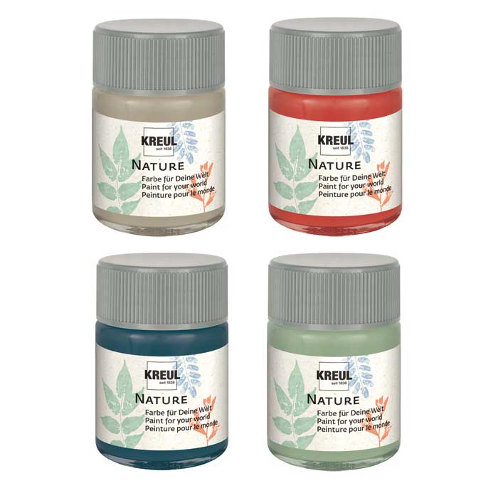 NACHHALTIG: Die KREUL Nature Farben bestehen zu 84 % aus nachhaltigen Rohstoffen natürlichen Ursprungs und sind Made in Germany. Kurze Transportwege sparen entsprechend CO2 ein.