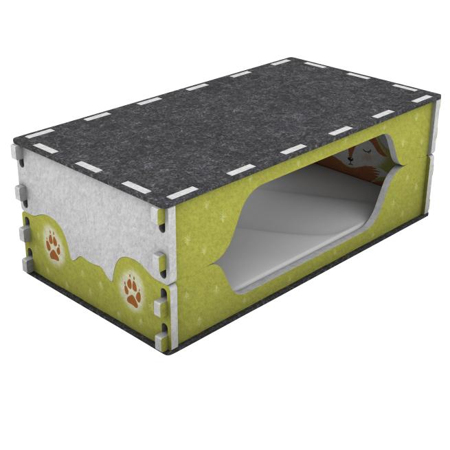Der besondere Clou: Zwei Bettchen desselben Motivs seitenverkehrt übereinander gelegt ergeben eine kuschelige Rückzugshöhle.
