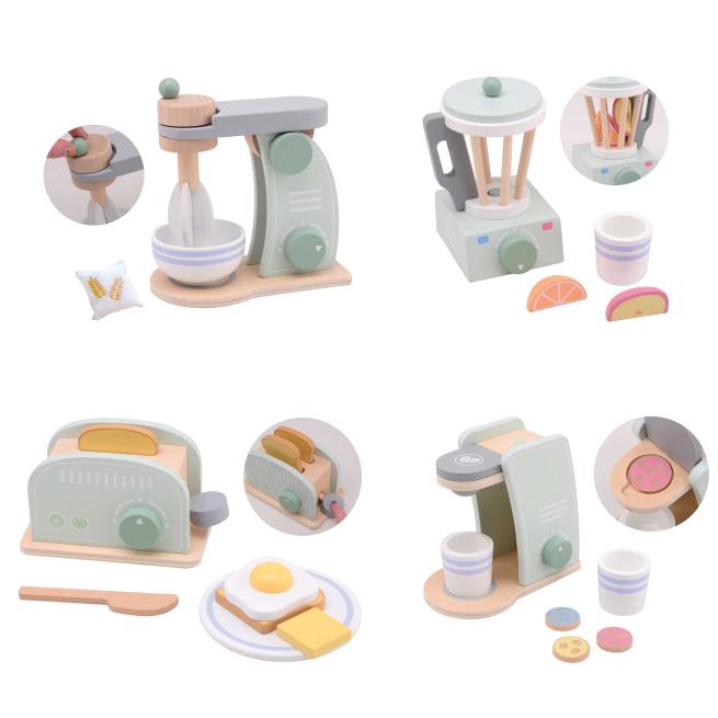 Wie zu Hause: Toasten, Brote schmieren, Kaffee machen, mixen und Kuchenteig kneten – mit diesen hilfreichen Küchengeräten und dem Zubehör sind Ihre Kinder in der Spielküche bestens ausgerüstet. Alle Küchengeräte samt Zubehör in trendigen Pastellfarben. Ab 3 Jahren.