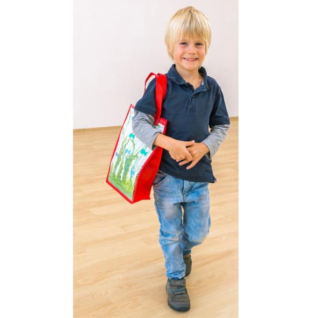 Wir verwenden diese Taschen im Kindergarten. Als Büchereitasche und Turntasche. Durch die Klarsichthülle können wir dort ein Bild des Kindes kleben und die Kinder der finden ihre Tasche schnell wieder