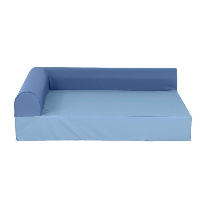 Die große Kuschelecke mit durchgehendem Polster bietet bequemen Platz für mehrere Kinder. Die halbrunden Rückenrollen sind fest mit der Kuschelecke vernäht, sodass alles an Ort und Stelle bleibt. Der feste Schaumstoff mit RG 25/40 bietet angenehmen Sitzkomfort. Die Bezüge sind abnehm- und waschbar im Feinwaschgang bei 30 °C.