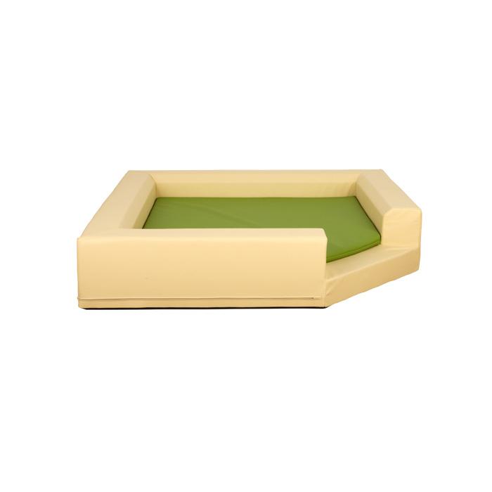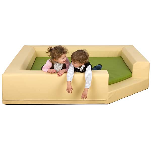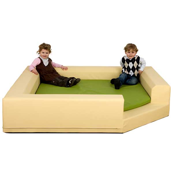 Eignet sich hervorragend zum Kuscheln und Toben. Besonders Krippenkinder freuen sich über die leichte Erhöhung der Kuschelecke, diese gibt das Gefühl von Geborgenheit. Das Kuschelnest passt platzsparend in jede Ecke. Der praktische Eingang liegt so, dass das Kuschelnest links oder rechts in die Raumecke passt. Das Kuschelnest hat eine herausnehmbare Bodenmatte. Das ist praktisch beim Reinigen und ideal, wenn Sie irgendwo mal eine große Matte benötigen.