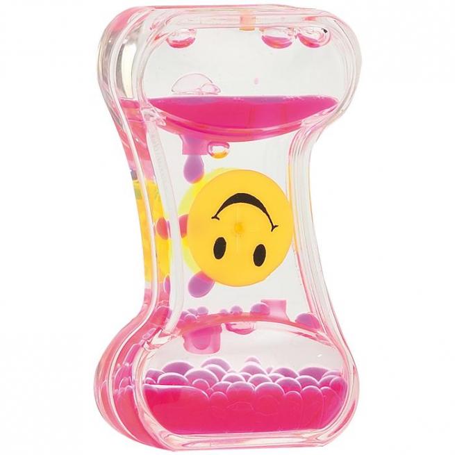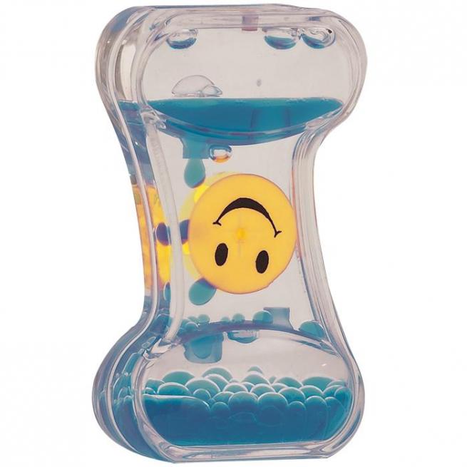 Farbige Tropfen rinnen über das Lachgesichter-Rad nach unten. Dabei dreht sich das Rad und gibt Tropfen für Tropfen wieder frei.
