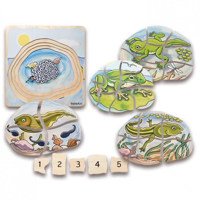 Von der Kaulquappe zum Frosch oder von der Raupe zum Schmetterling – die einzelnen spannenden Entwicklungsstadien erpuzzeln sich Ihre Kinder schichtweise mit den Lagenpuzzles. Die einzelnen Schichten sind treppenweise angelegt. Geschicklichkeit, Vorstellungsvermögen und Konzentration trainieren die Kinder gleich mit. Bei schwierigeren Motiven hilft die Nummerierung auf der Rückseite.