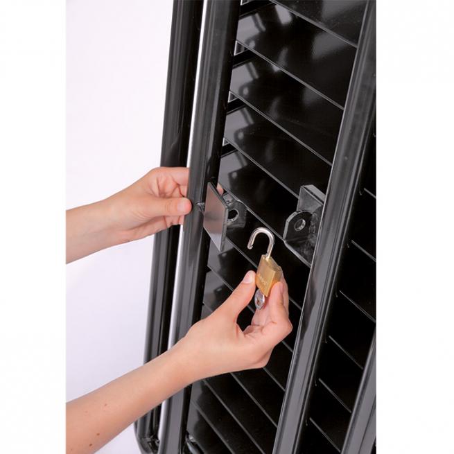 Bitte beachten Sie, dass die zur Verriegelung des Schranks erforderlichen 3 Vorhängeschlösser nicht im Lieferumfang enthalten sind.
