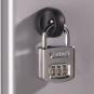 | Diebstahl-Schutz in 4 Schloss-Varianten: 1) Standard 2) Sicherheits-Drehriegel mit Vorhangschloss 3) Elektronisches Pin-Code-Schloss 4) Mechanisches Zahlenschloss • für feste Nutzer • für wechselnde Nutzer Service-Schlüssel für das elektronische Pin-Code-Schloss Service-Schlüssel für das mechanische Zahlenschloss |