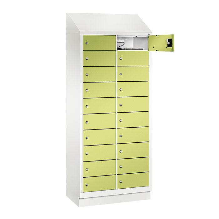 Laptopschrank mit 20 Fächern, Schrägdach und Elektrifizierung