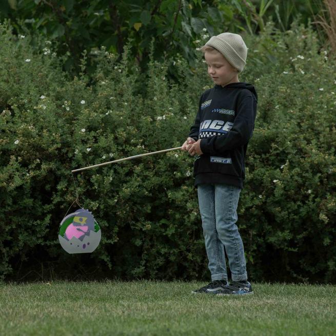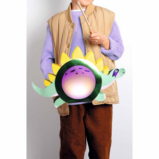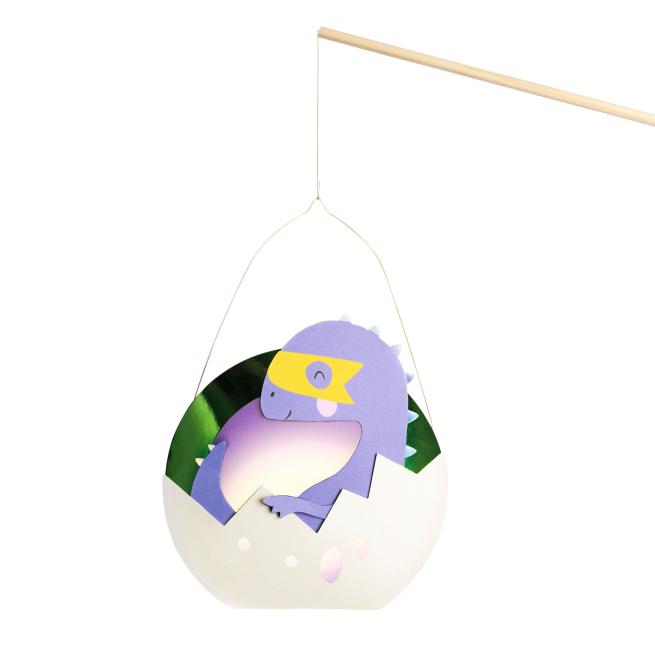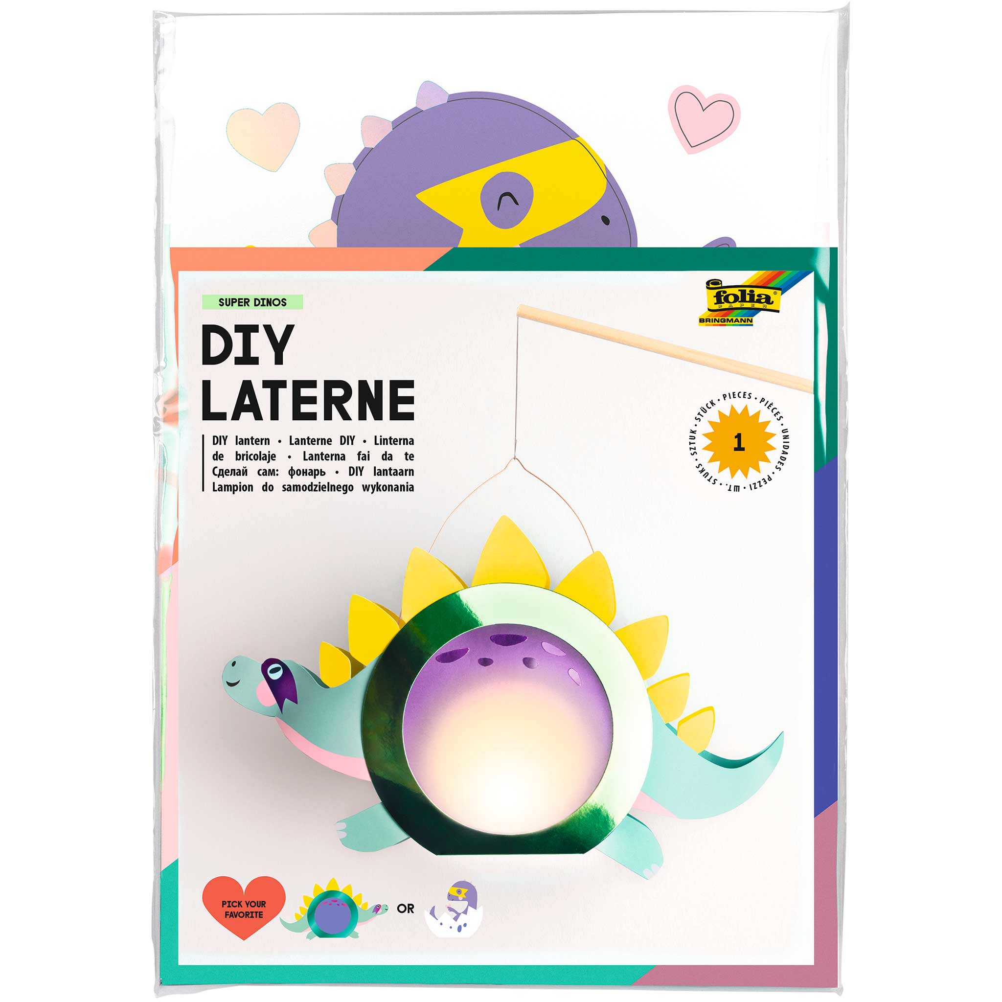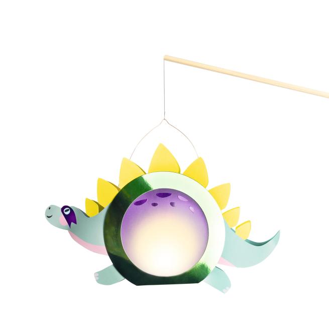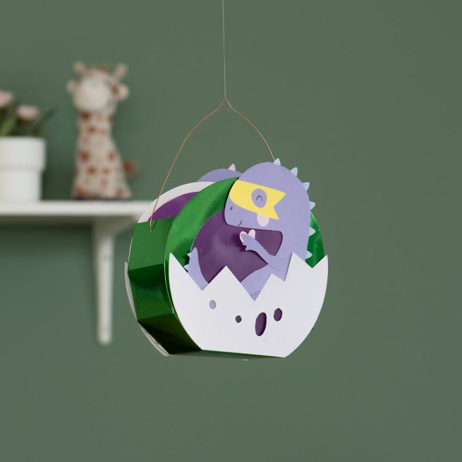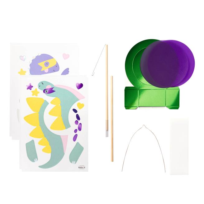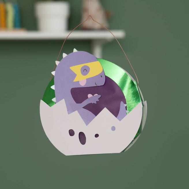 Mit dem Laternen-Bastelset Superhero-Dinos gestalten Dinosaurier-Freunde ihre eigene strahlende Leuchte. Doch welches Dino-Motiv der beiden möglichen möchten die Kinder aus dem metallic-hellgrünen Laternen-Rohling zusammensetzen: ausgewachsener Superhelden-Dino oder Baby-Dino, das gerade aus seinem Ei schlüpft?