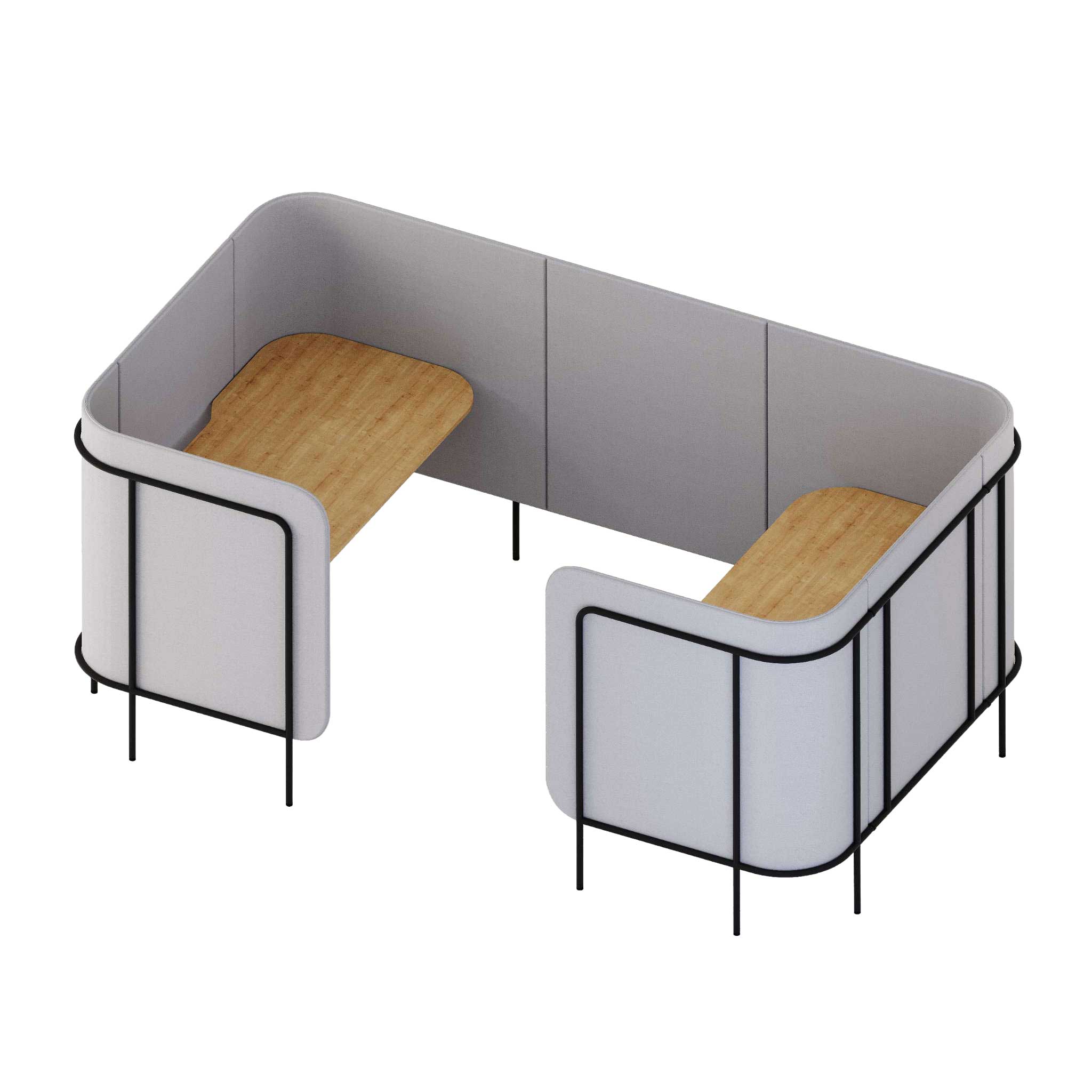 Das akustisch wirksame Innenraummodul double_pod ist die perfekte Wahl, wenn es um die partnerschaftliche Arbeit an wichtigen Projekten geht. Zwei separate Arbeitsplätze mitsamt eigener Tischplatte, integriert in eine schallreduzierende, offene Kabine mit gemütlichem Wohlfühlfaktor. Die ruhige Atmosphäre des double_pod ermöglicht dabei sowohl die konzentrierte Einzelarbeit als auch den ungestörten kooperativen Austausch sowie allseits einen hervorragenden Arbeitsfluss.