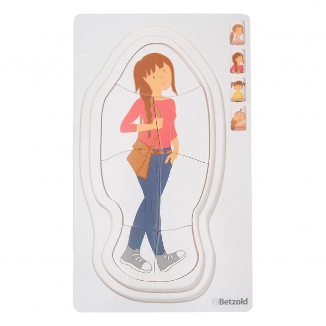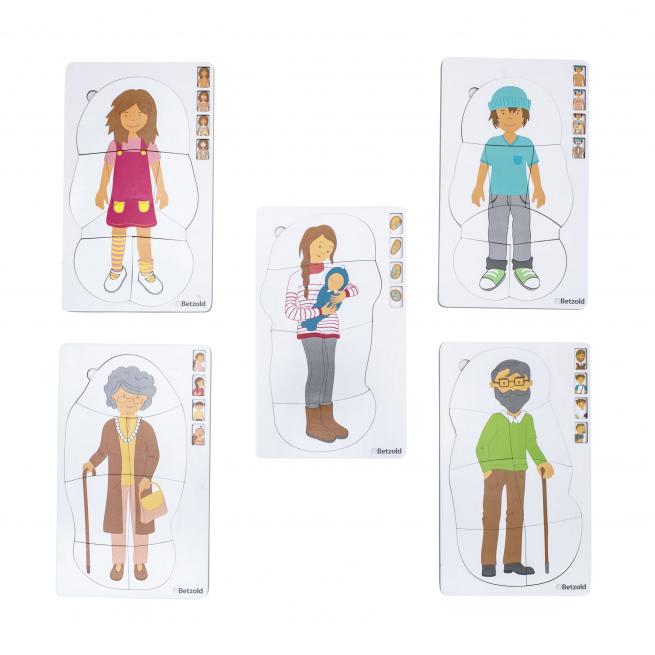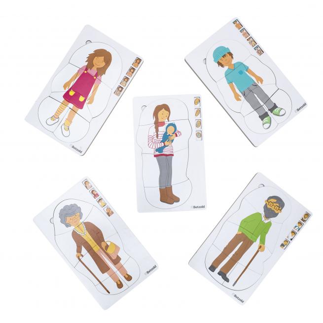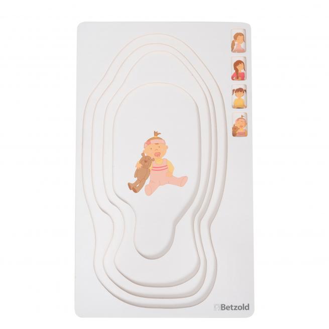 Die Stationen des Älterwerdens erleben Kinder anschaulich anhand der 4 Lagen und 28 Puzzleteile. Das Puzzle liefert Gesprächsimpulse und fördert sprachliche Entwicklung sowie Vorstellungsvermögen