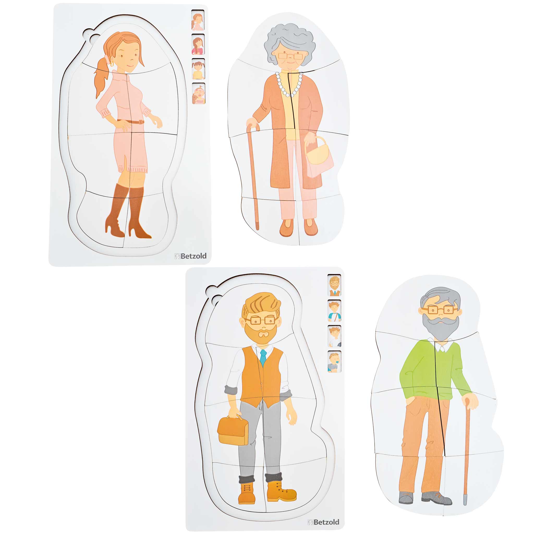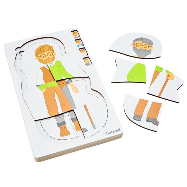Die Stationen des Älterwerdens erleben Kinder anschaulich anhand der 4 Lagen und 28 Puzzleteile. Das Puzzle liefert Gesprächsimpulse und fördert sprachliche Entwicklung sowie Vorstellungsvermögen.