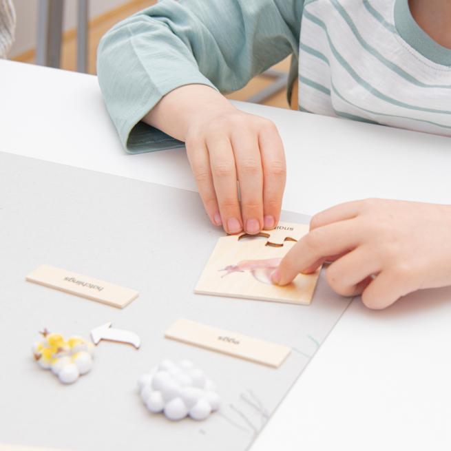 Die Beschreibungsholzplättchen zu den einzelnen Modellen und die rechteckigen Puzzleteile zeigen die einzelnen Phasen als Illustration und die deutsche sowie englische Bezeichnung. Neben ihrem bilingualen Wortschatz trainieren die Kinder auch spielend ihre Auge-Hand-Koordination, die Feinmotorik und Konzentration. Bestens geeignet für Thementage (auch im Kindergarten), den MINT- bzw. Sachunterricht oder Lernstationen. Inklusive praktischer Aufbewahrungsbox aus Holz.