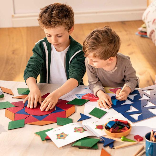 Dieses Legespiel fordert und fördert Geschick sowie Vorstellungskraft. Mit den unterschiedlich geformten und abgerundeten Rauten, Drachenvierecken und Pfeilen legen Kinder fantastisch kreative Muster und Formen. Zudem lernen sie geometrische Grundlagen kennen. Das kooperative Spiel für bis zu 10 Mitspielende stärkt das Miteinander. Ab 3 Jahren.