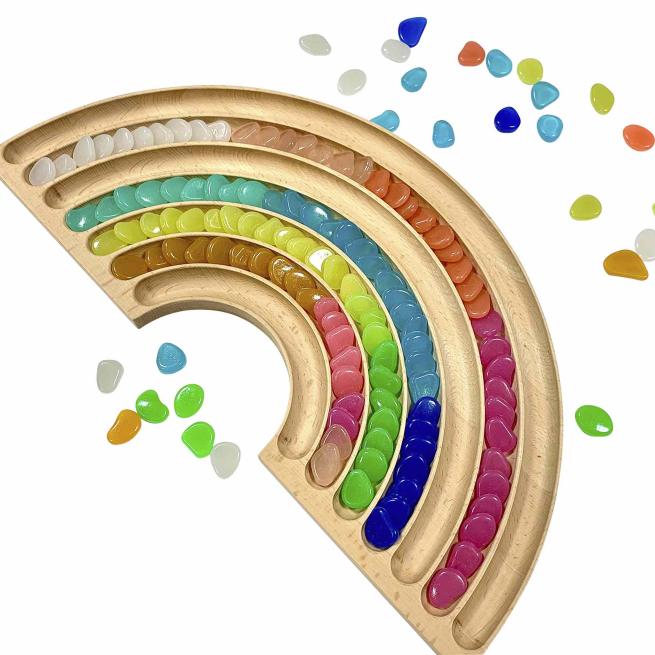Das Legebrett in Form eines Regenbogens ist bestens geeignet für Sortierspiele und jahreszeitliche Dekorationen. Die breiten Rillen bieten dafür eine optimale Fläche. Lege- und Bastelmaterialien (nicht enthalten) liegen sicher darin, denn nichts verrutscht.