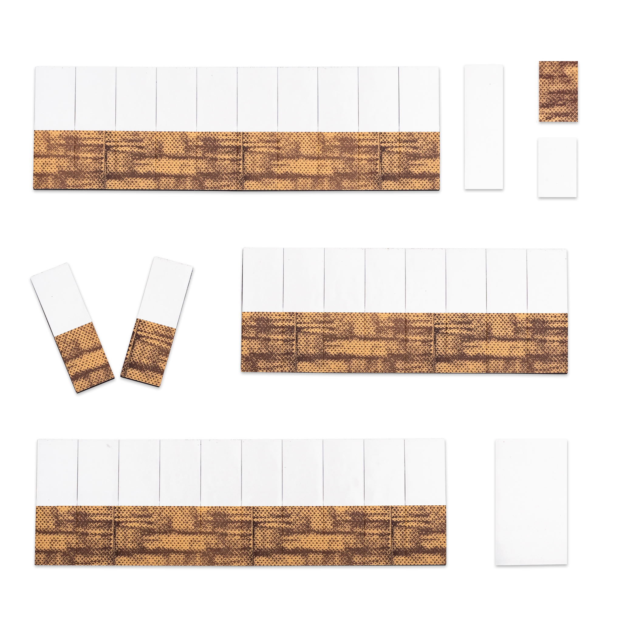 30 Kippmagnete, 10 x 30 mm, halb farbig, halb weiß.