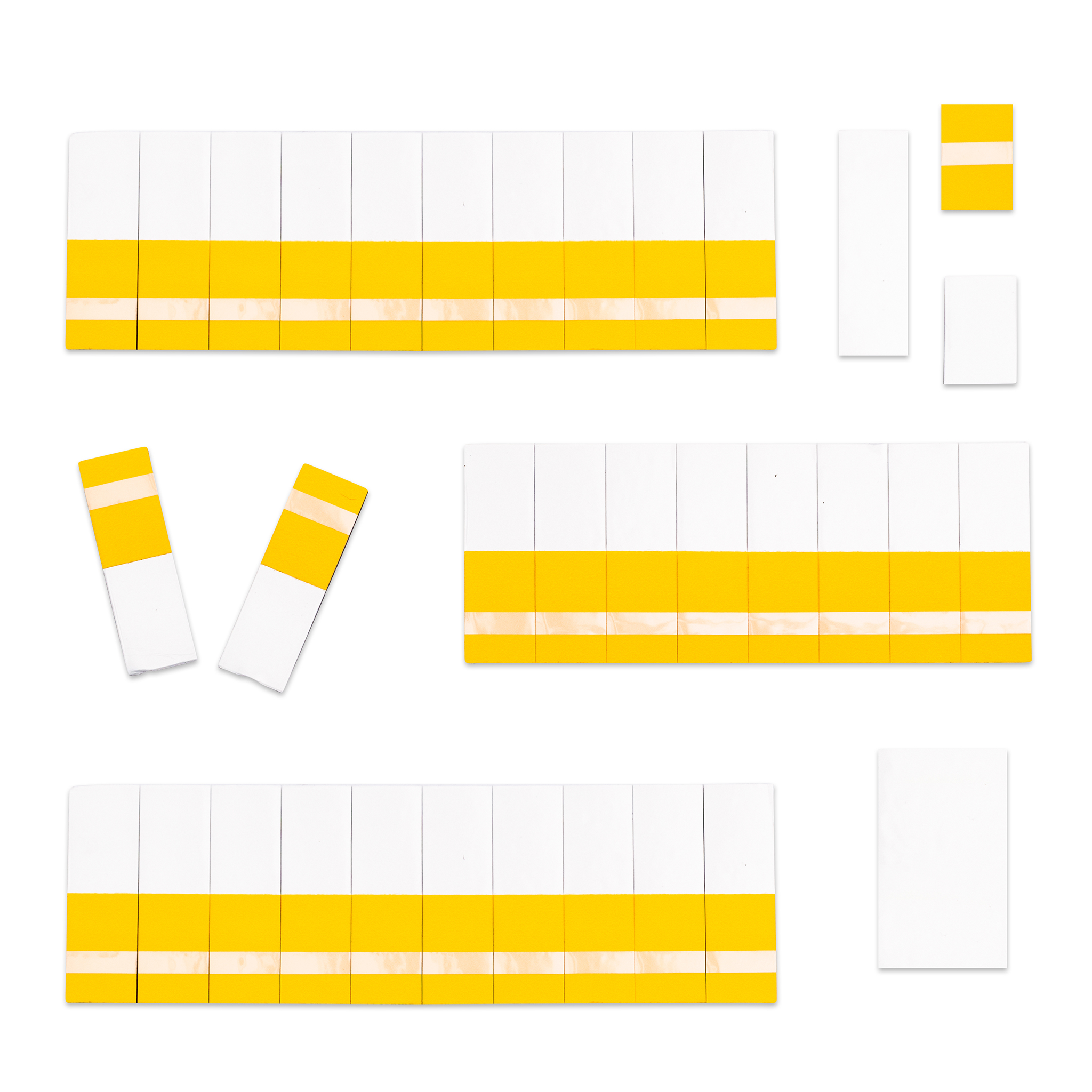30 Kippmagnete, 10 x 30 mm, halb farbig, halb weiß.