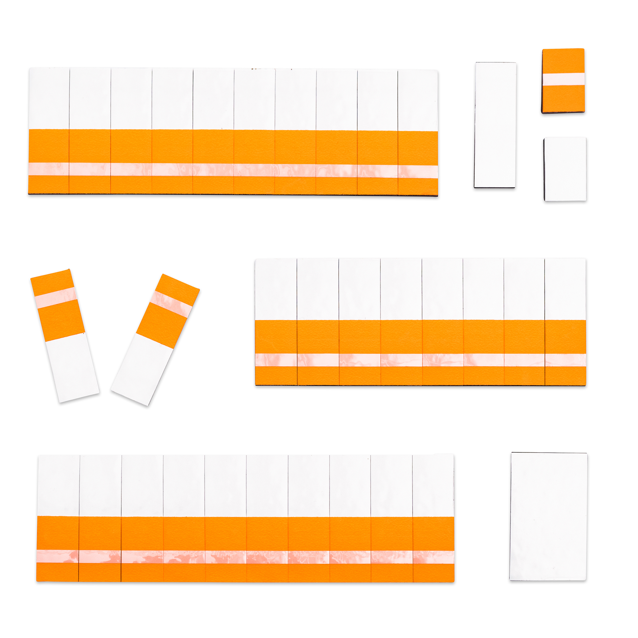 30 Kippmagnete, 10 x 30 mm, halb farbig, halb weiß.
