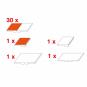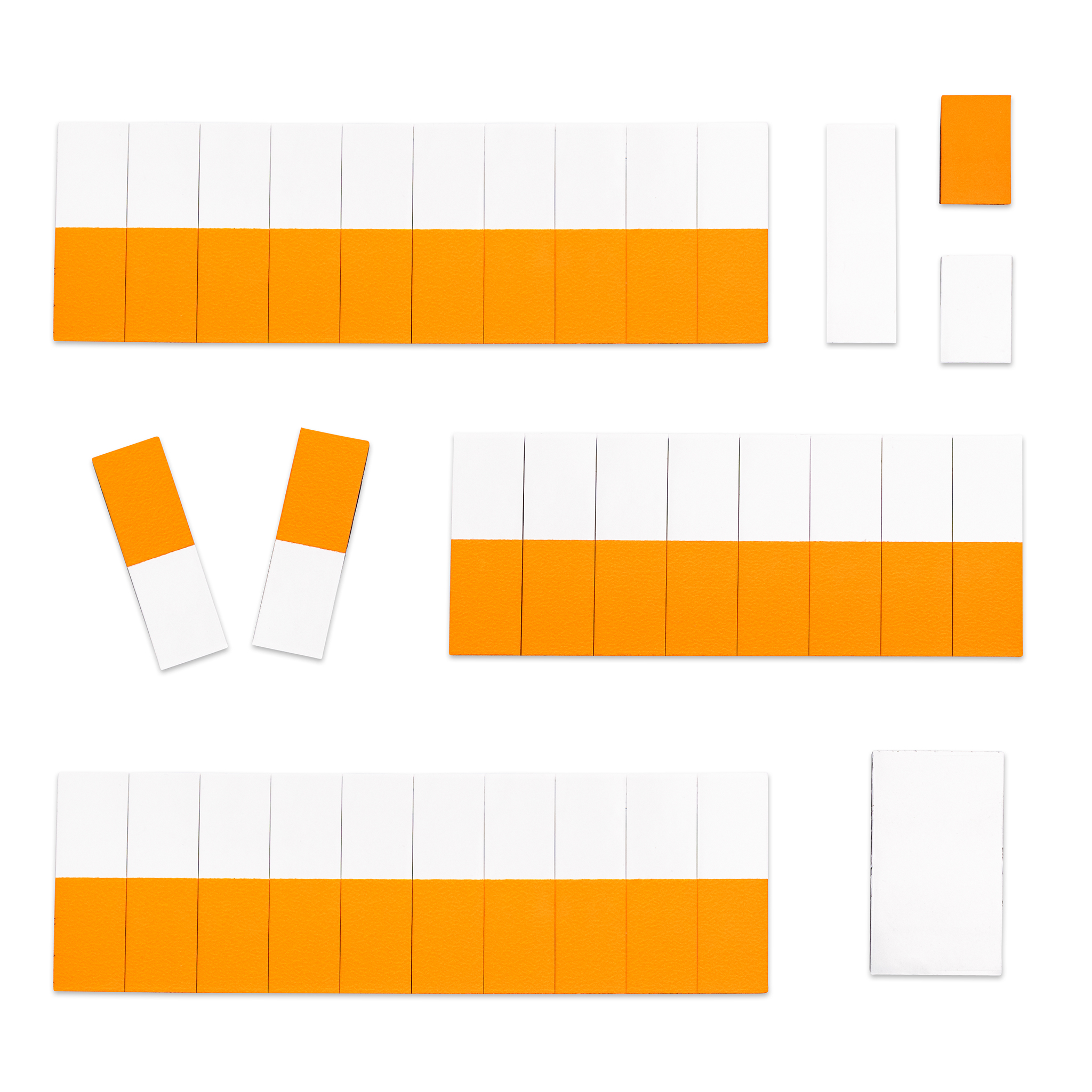 30 Kippmagnete, 10 x 30 mm, halb farbig, halb weiß.