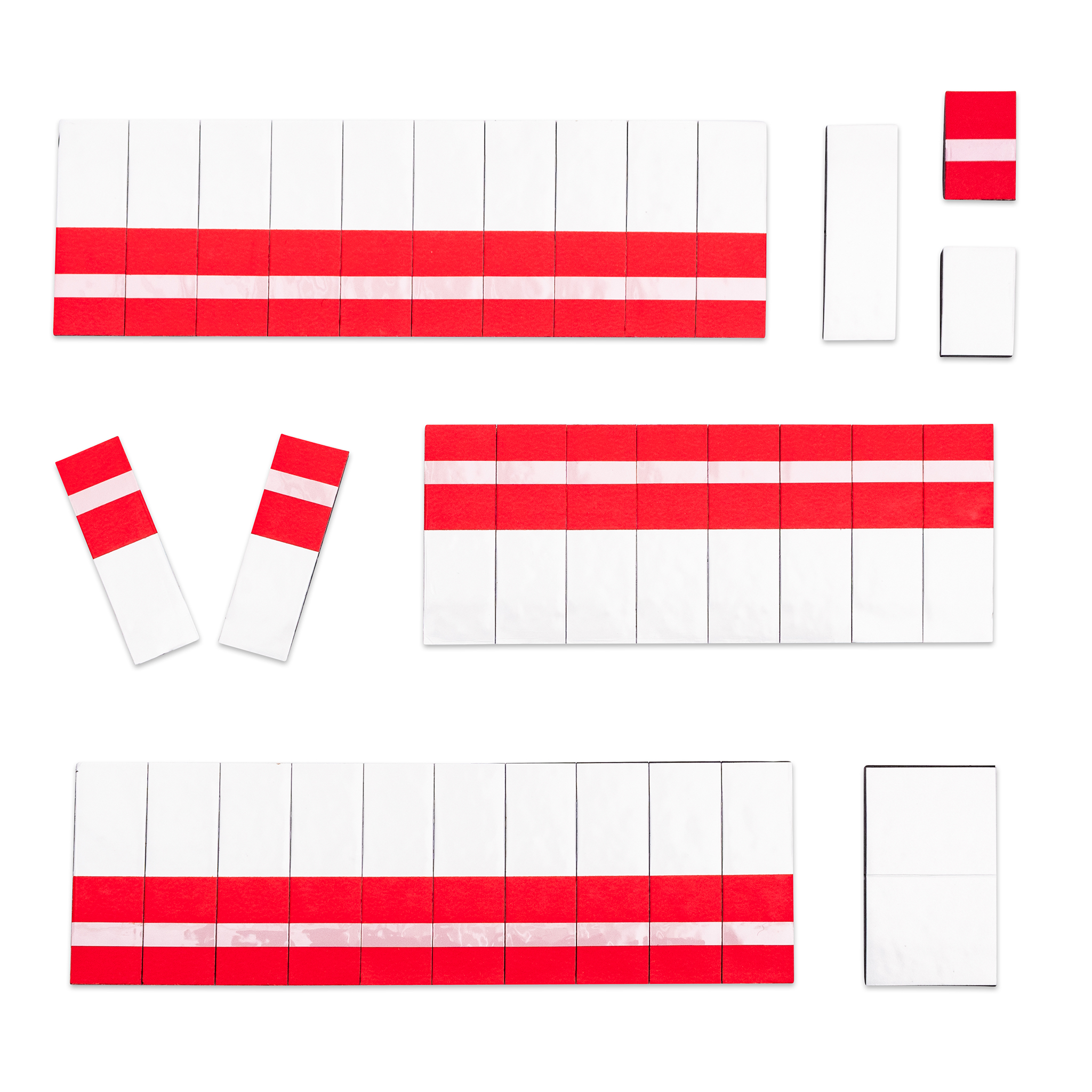 30 Kippmagnete, 10 x 30 mm, halb farbig, halb weiß.