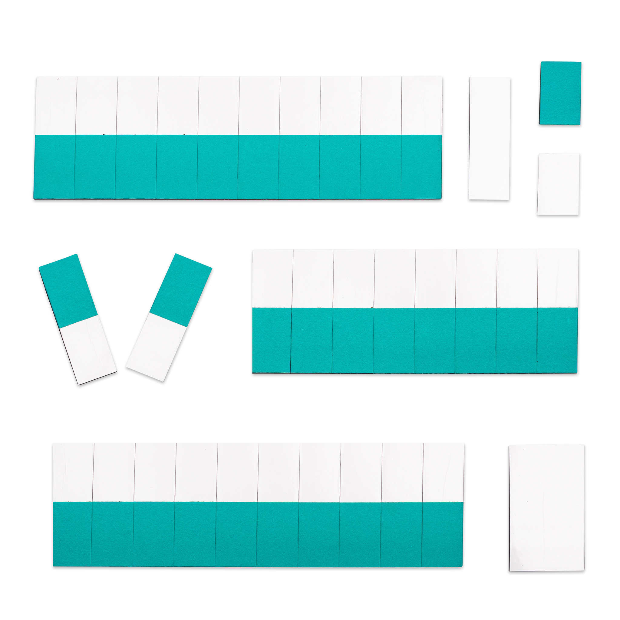 30 Kippmagnete, 10 x 30 mm, halb farbig, halb weiß.