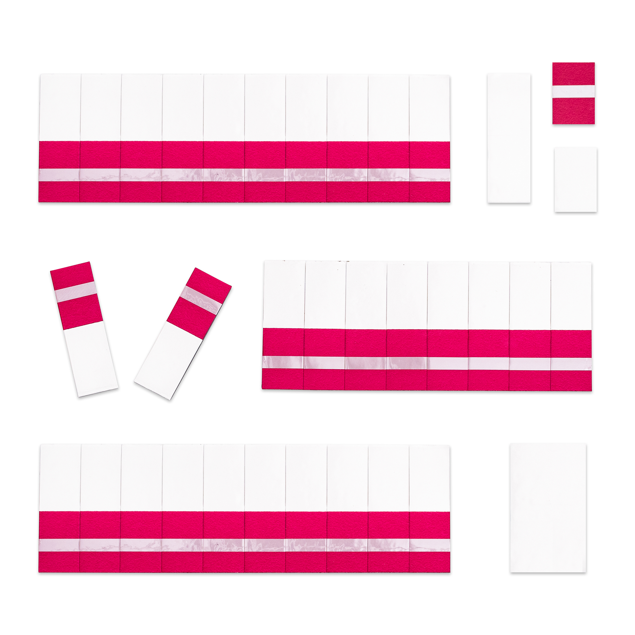 30 Kippmagnete, 10 x 30 mm, halb farbig, halb weiß.