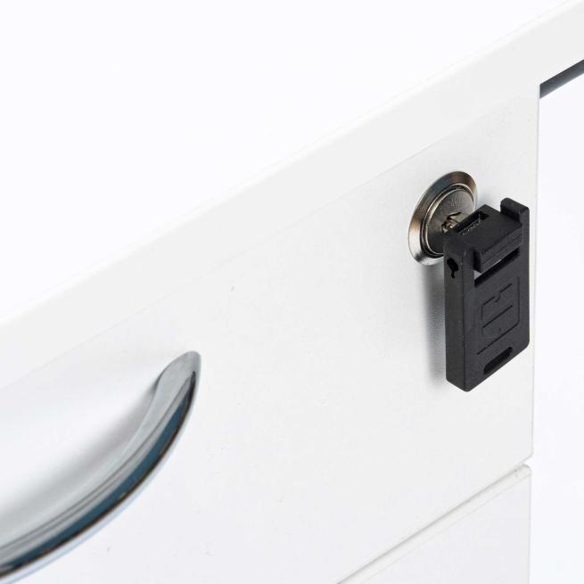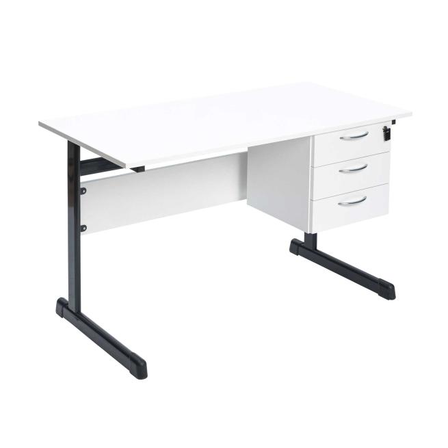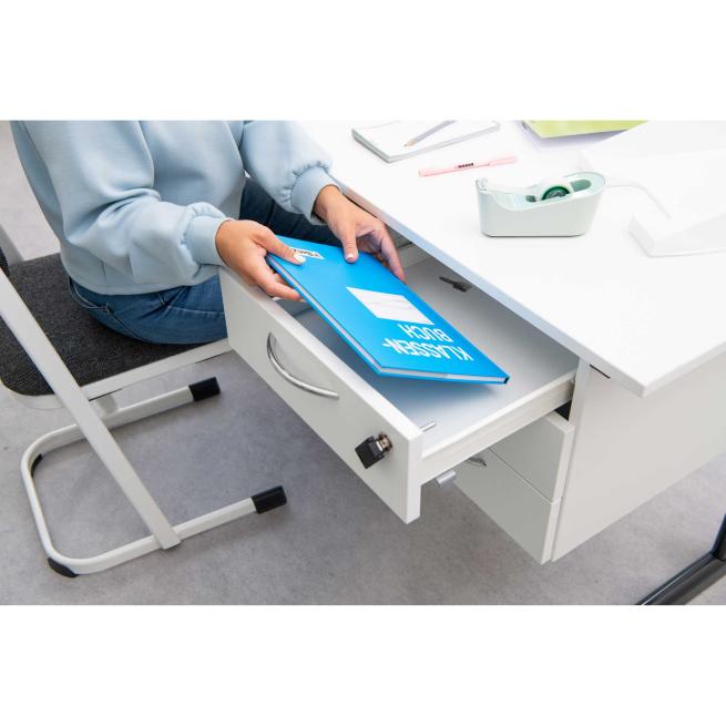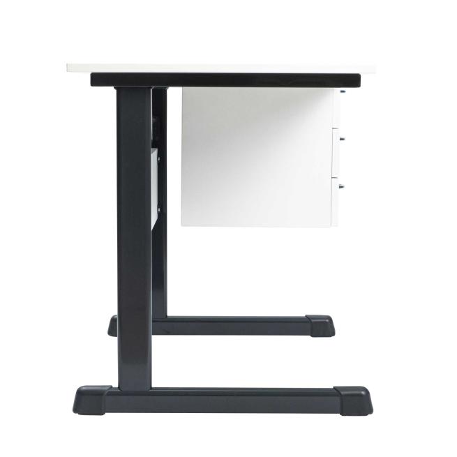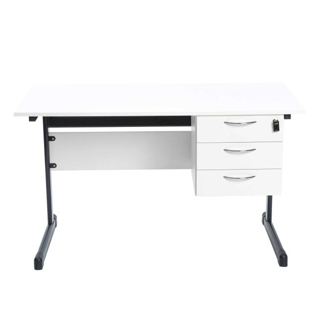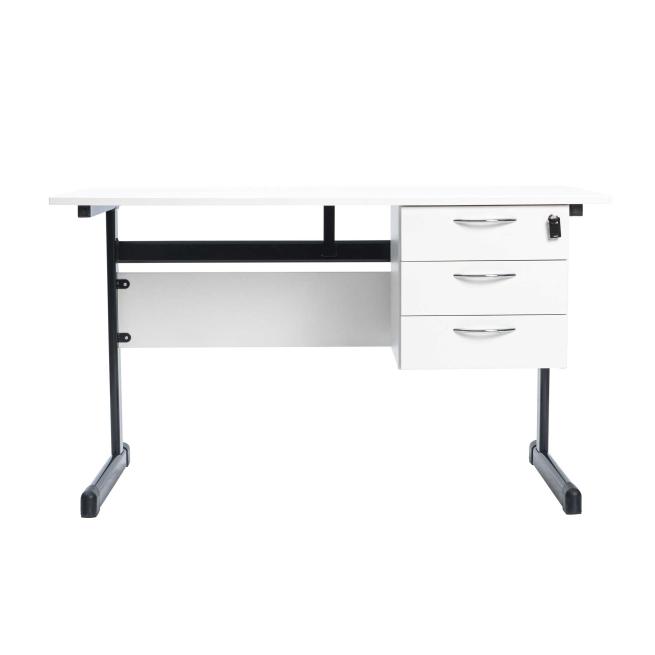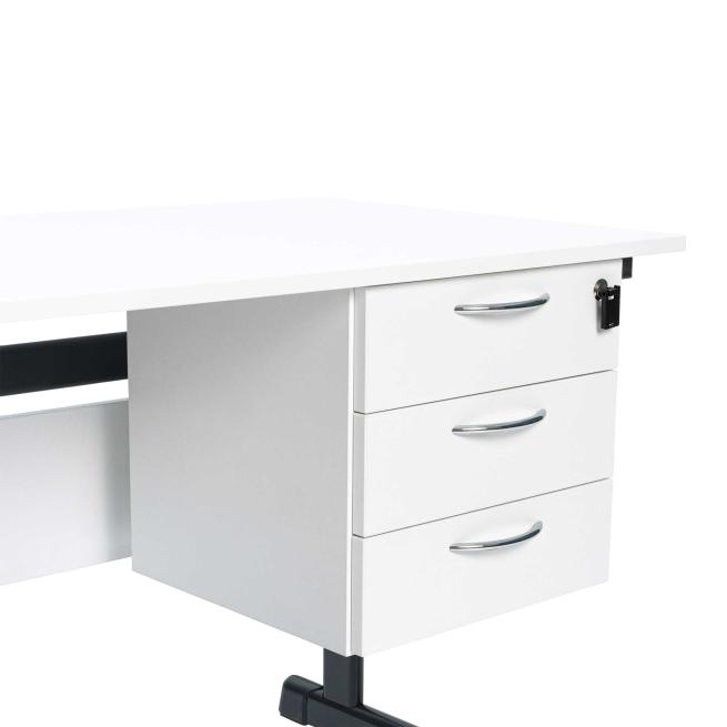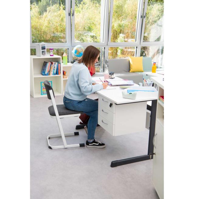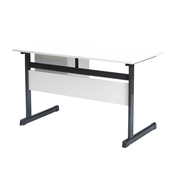 Gestell aus Präzisionsovalrohr. Gleiche superstabile Bauweise wie bei den Schülertischen aber mit großer Arbeitsplatte und Front-Sichtblende serienmäßig.