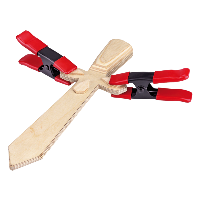 Diese zwei Helfer fixieren zusammenzuleimende Holzteile.
