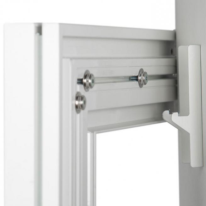 Die rahmenlose Leinwand eignet sich z. B. hervorragend als Projektionsfläche hinter einer Pylonen-Schiebetafel. Auch bestens geeignet und sofort einsatzbereit, um sie an jeder anderen Wand im Raum zu platzieren. Das nicht sichtbare Rahmenprofil vermittelt den Eindruck einer frei schwebenden Bildwand. Optimiert für die Projektion mit Ultrakurzdistanzprojektoren.