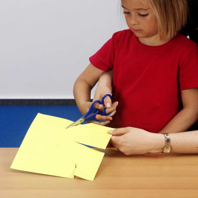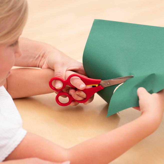 Durch die doppelten Grifflöcher nutzen Sie die Lern-Schere mit einem Kind gemeinsam. Während das Kind die vorderen Grifflöcher für Daumen und Zeigefinger nutzt, nutzen Sie die hinteren. So umfassen Sie mit Ihrer Hand die des Kindes und leiten die korrekte Schneidebewegung an. Auch das Öffnen und Schließen vermitteln Sie so für das Kind nachvollziehbar. Im Handumdrehen lernt es, die Schere auch allein zu nutzen.