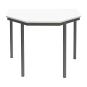 Der LernFlex 2 Sechsecktisch ist Teil der Möbelserie LernFlex 2 und lässt sich optimal kombinieren mit dem passenden Caddy. Den neuen flexiblen und stabilen Arbeitstisch für Ihr Klassenzimmer stellen Sie aus fünf unterschiedlichen Höhen, neun Tischplatten-Dekoren und zehn Farben fürs Stahlgestell individuell zusammen. Für den Unterricht in Grund- und weiterführender Schule ist der Tisch mit Holztischplatte auf stabilem Stahlgestell optimal geeignet. Vier bis 2 cm verstellbare Bodenausgleichsschrauben gleichen Unebenheiten aus und geben dem Tisch Standfestigkeit. Die Lieferung erfolgt fertig montiert.