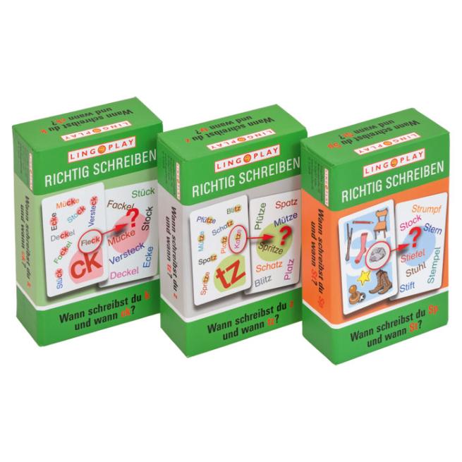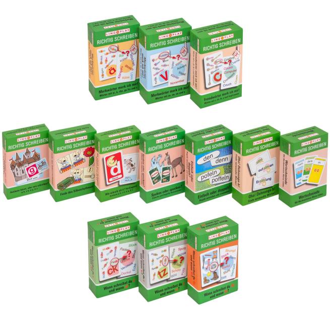 Ob schwierige Doppellaute, unterschiedliche Sprechrhythmen, kurze oder lange Vokale, Auslaute hören und schreiben, das kniffelige Dehnungs-h oder das Kombinieren von Wortbausteinen zu neuen Wörtern – mit diesen Sets wird richtig schreiben zum Kinderspiel.