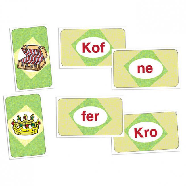 Mit diesem Spiel wird Lesen Lernen zum Riesenspaß! Die Schüler zerlegen die 2- und 3-silbigen Wörter in einzelne Silben oder setzen komplexe Wörter aus verschiedenen Silbenkarten zusammen. Anschließend ordnen sie die Wörter den passenden Abbildungen zu. Wer wird Silbenkönig? Für 2 – 4 Spieler.