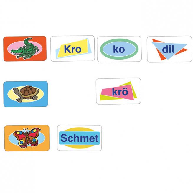 Mit diesem Spiel wird Lesen Lernen zum Riesenspaß! Die Schüler zerlegen Wörter in einzelne Silben oder setzen komplexe Wörter aus verschiedenen Silbenkarten zusammen. Anschließend ordnen sie die entstandenen Silben oder ganzen Wörter den passenden Abbildungen zu. Hier geht die Silbensonne auf, wenn die SuS aus Silben Wörter bilden. Für 2 – 4 Spieler.