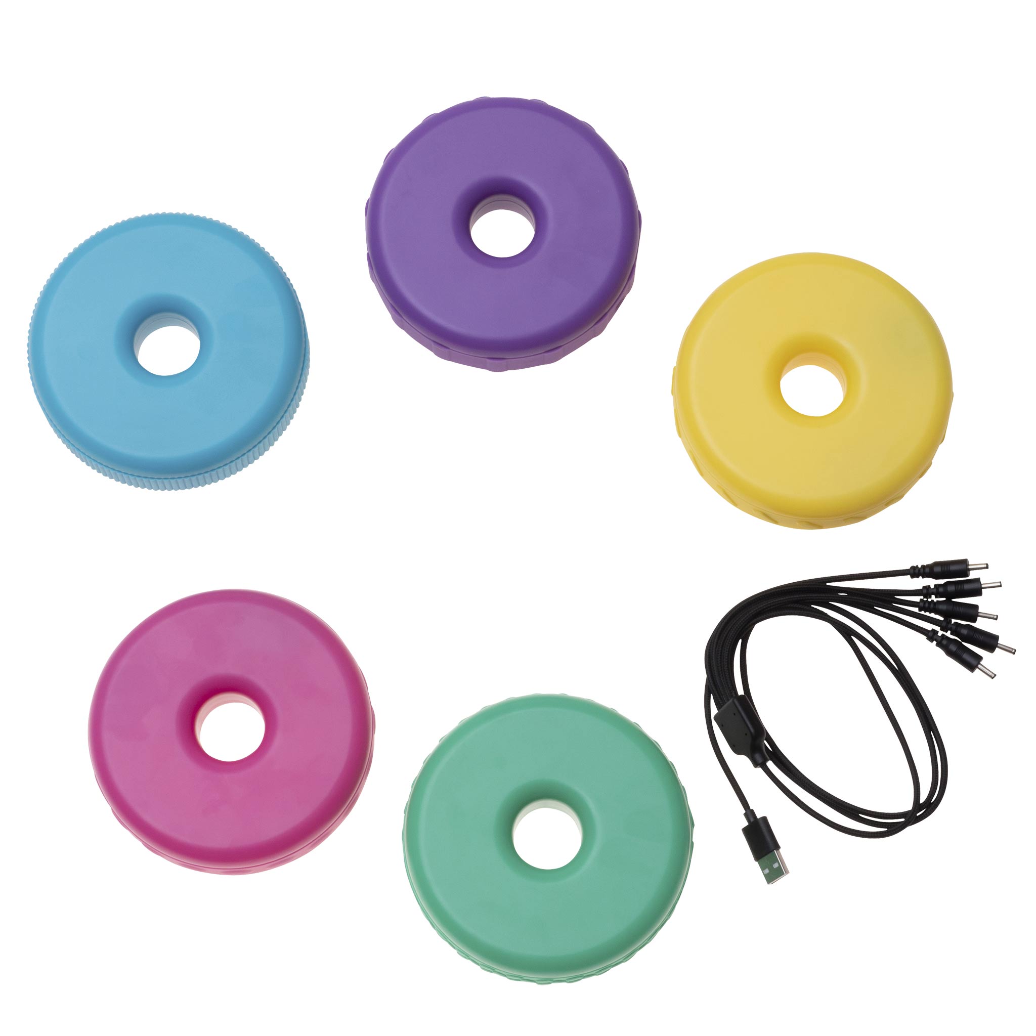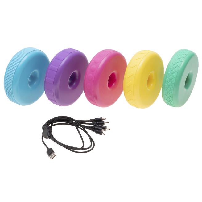 5 Leucht-Scheiben (inklusive Akku)1 USB-Kabel