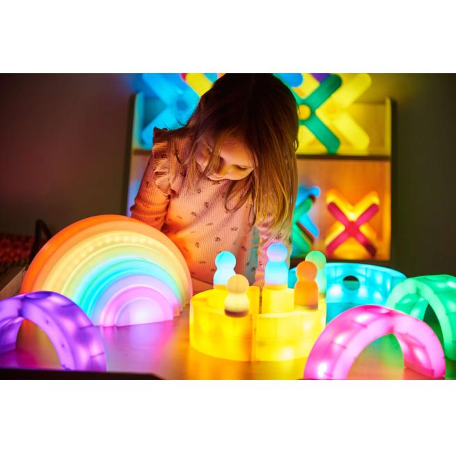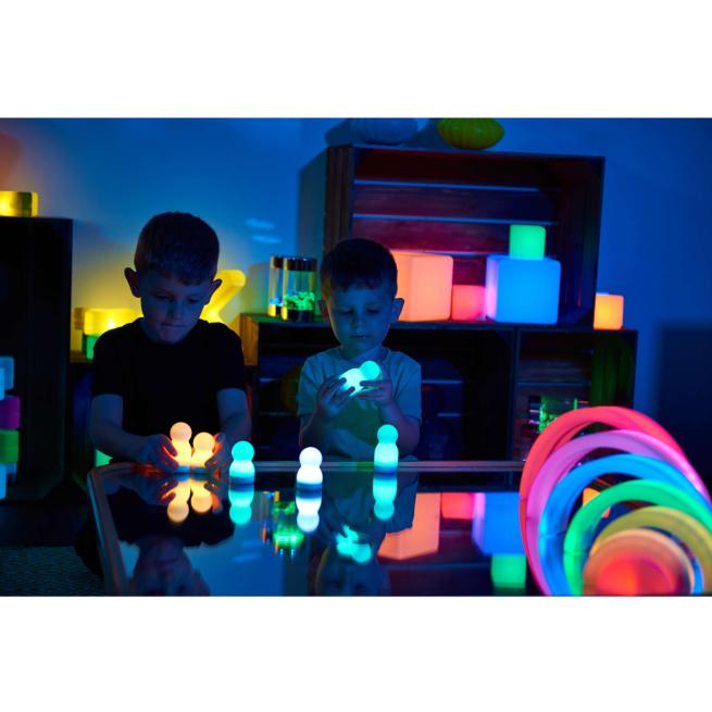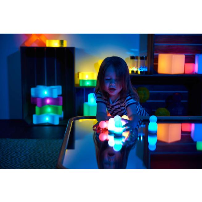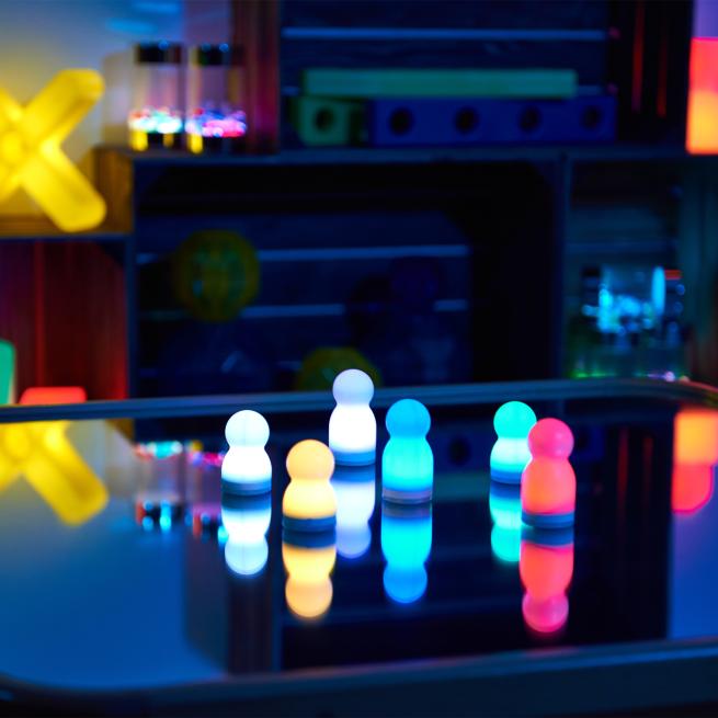 Mithilfe der leuchtenden Figuren trainieren Kinder z. B. ihr Verständnis des Prinzips Ursache und Wirkung. Intuitiv bedienen die Kinder die Figuren und ändern deren Farben oder lassen sie rotieren. Spielerisch nutzen sie die Figuren zum Erzählen, denken sich tolle Geschichten aus, in die sie die leuchtenden Figuren einbauen oder üben mathematische Basiskompetenzen wie Zählen oder Sortieren.
