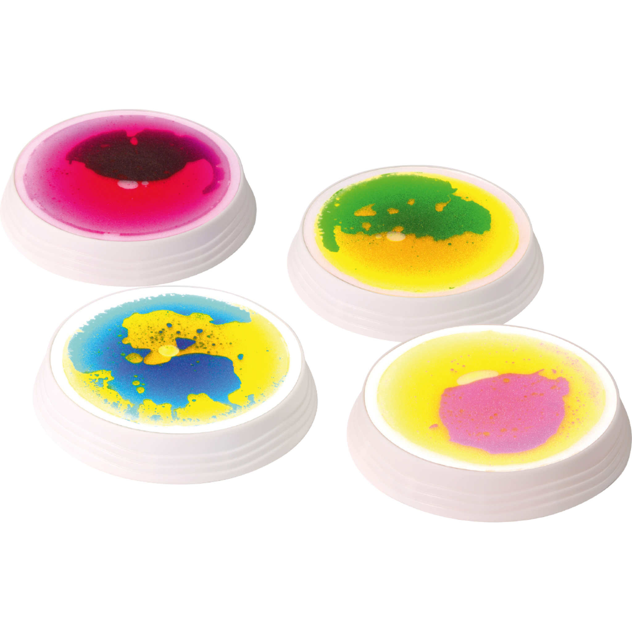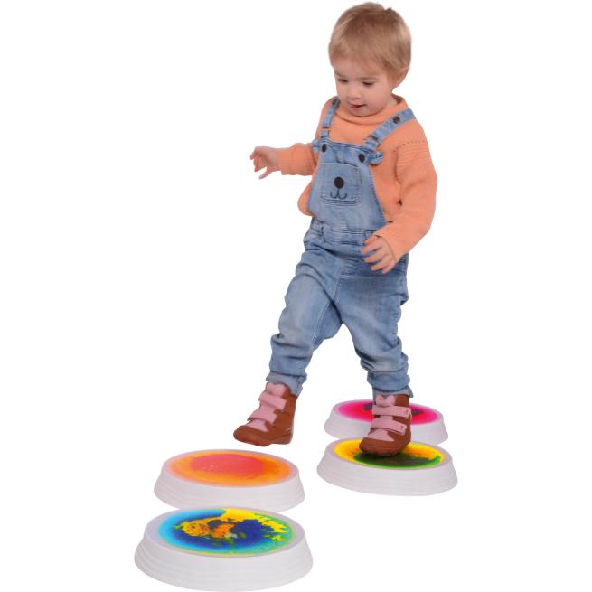 In kleinen und großen Schritten auf erleuchteten Pfaden wandeln: Die weichen Trittflächen der Leuchtinseln sind mit Wasser und harmloser Kosmetikflüssigkeit in vielen bunten Farben gefüllt und geben beim Begehen sanft nach. Dabei zeigen sich durch die Berührungen der Kinder immer neue, fantasieanregende Muster und Effekte. Das interaktiv-handlungsauffordernde Nutzungsprinzip lädt zu zahlreichen Lernspielen ein, die die Farbwahrnehmung und motorischen Fähigkeiten fördern.