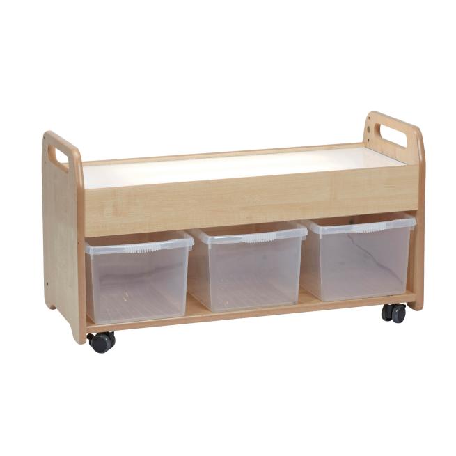 Mit dem Leuchtmobil gehen Sie und die Kinder auf spannende sensorische Entdeckungsreise. Auf der großen Leuchtfläche platzieren Sie die unterschiedlichsten Objekte und lassen alltägliche Dinge in einem ganz neuen Licht erscheinen. Die hellen LED unter der Abdeckplatte sorgen dabei für großartige Illuminationen und schaffen eindrucksvolle visuelle Lernerlebnisse. Anschließend verstauen Sie das Sinnesmaterial im untenliegenden Boxenfach und den mitgelieferten transparenten Lagerkisten. Ebenfalls praktisch: Die LED-Leuchten sind austauschbar und lassen sich bei Bedarf kinderleicht auswechseln.