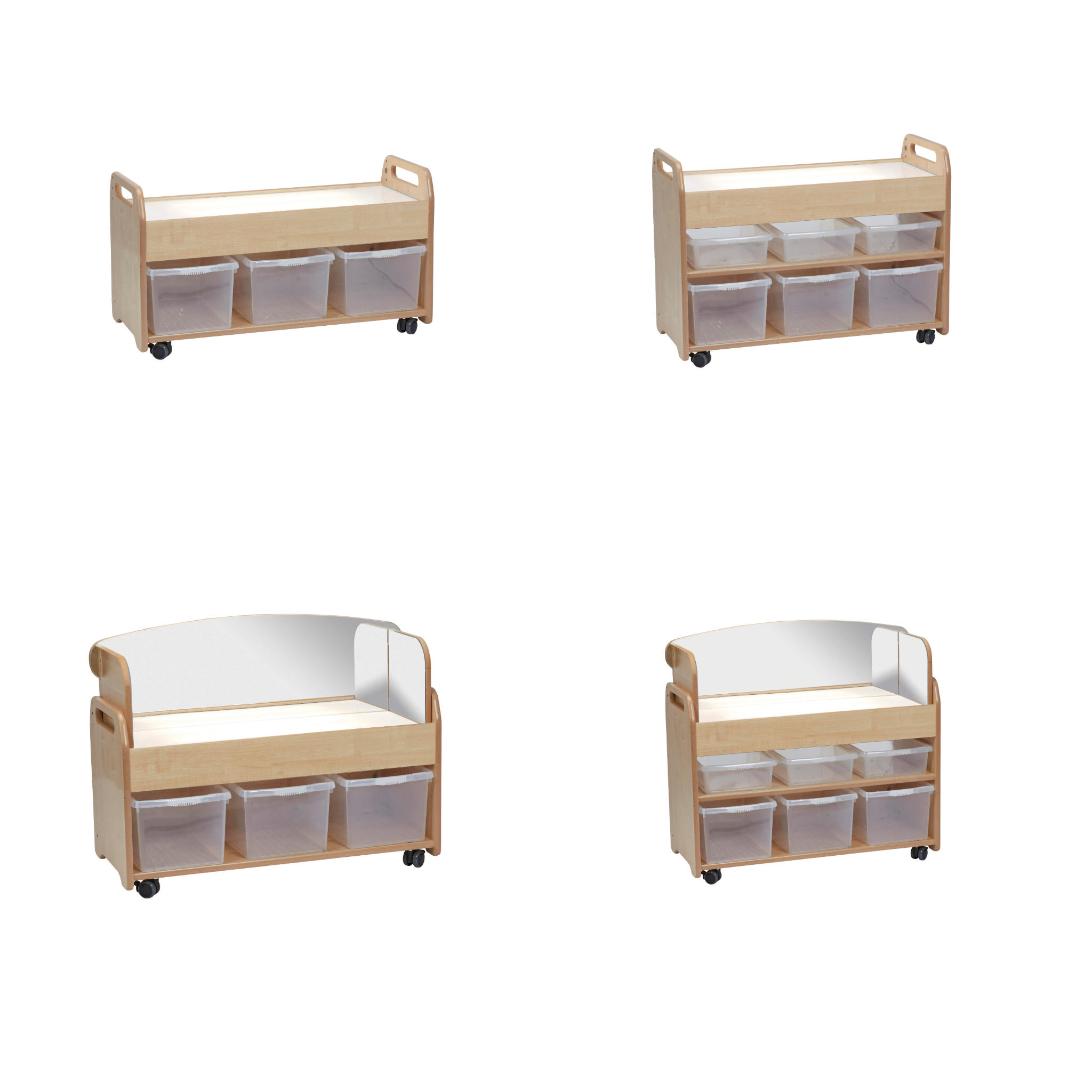 Der Leuchtwagen steht in verschiedenen Varianten zur Auswahl: Sie erhalten ihn als Leuchtmobil Mini in extraniedriger Ausführung für Kinder ab 2 Jahren oder als Leuchtmobil Midi für alle Forschenden ab 3 Jahren, jeweils mit oder ohne montierbarem Spiegel (bitte wählen). Je nach Größenausführung fällt auch der verfügbare Stauraum des Leuchtmobils unterschiedlich umfangreich aus. So erhalten Sie die Mini-Variante inklusive 3 großen transparenten Boxen, die Midi-Version inklusive 3 großen und 3 kleinen transparenten Boxen. Egal, was Sie benötigen: Das Leuchtmobil steht stets in der für Ihren Bedarf passenden Ausführung bereit. Optionale Spiegel zur einfachen Selbstmontage.