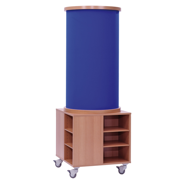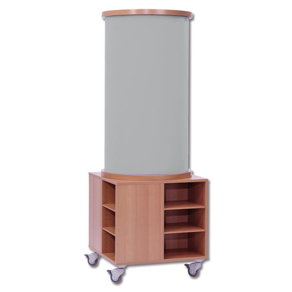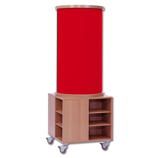Litfaßsäule mit Regal-Unterbauschrank mit Stoffbezug