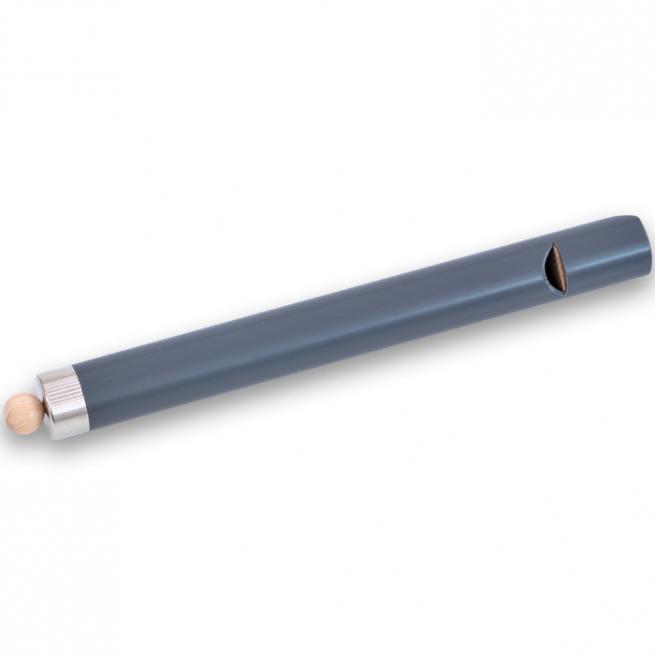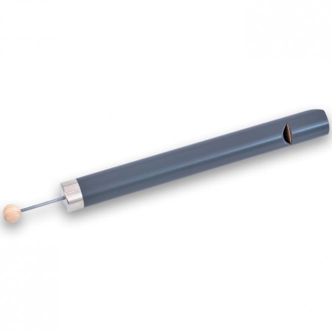 Die Lotusflöte besteht aus Kunststoff und hat ein Mundstück aus Holz. Sie spielen sie, indem Sie den Zugstab am hinteren Ende stufenlos variieren, wobei Sie die jeweilige Tonhöhe verändern, wenn Sie den Stab entweder ziehen oder schieben. Ziehen bewirkt einen tieferen Klang, Schieben einen höheren. Nutzen Sie die Lotusflöte, um Geschichten zu untermalen, indem Sie etwa einen Vogel oder den Wind nachahmen.