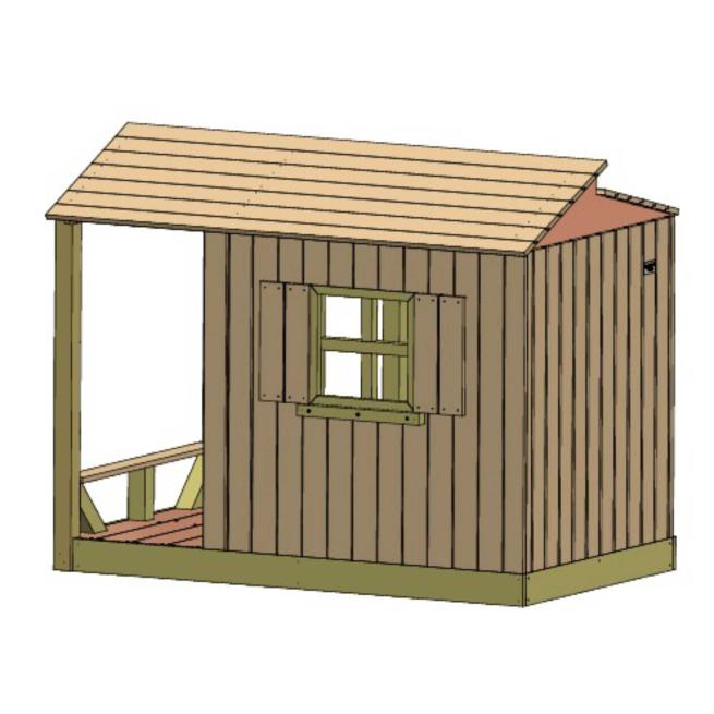 Das Lounge-Häuschen verbindet geschützten Rückzug mit kindgerechter Sicherheit. Das versetzte Satteldach setzt einen modernen Akzent ohne scharfe Kanten, die stabilen Standpfosten geben eine heimelige Landhausnote. Das integrierte Fensterelement bringt zusätzliches Tageslicht ins Häuschen, schafft Sichtkontakt und unterstützt ein freundliches Ambiente. Die freie Fallhöhe von nur ca. 0,12 m und die Bauweise gemäß EN-1176 unterstreichen den Einsatz in pädagogischen Einrichtungen. Die Lieferung in vormontierten Elementen erleichtert den Aufbau und spart Zeit bei der restlichen einfachen Montage.